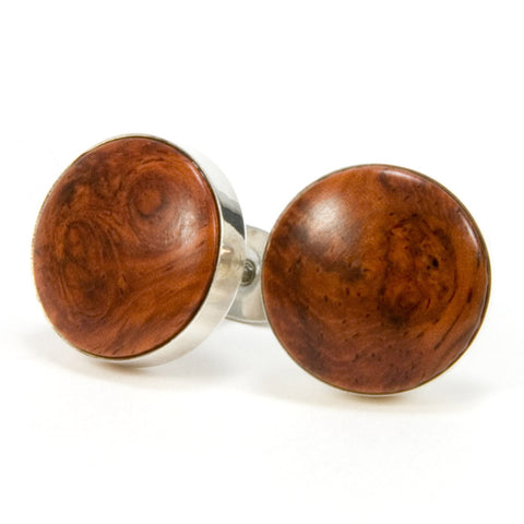 These amboyna burl sterling silver stud earrings are stunning with their rich colors and swirls of amboyna burl; making them an irresistible gift idea for that special someone.